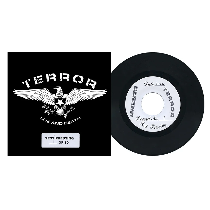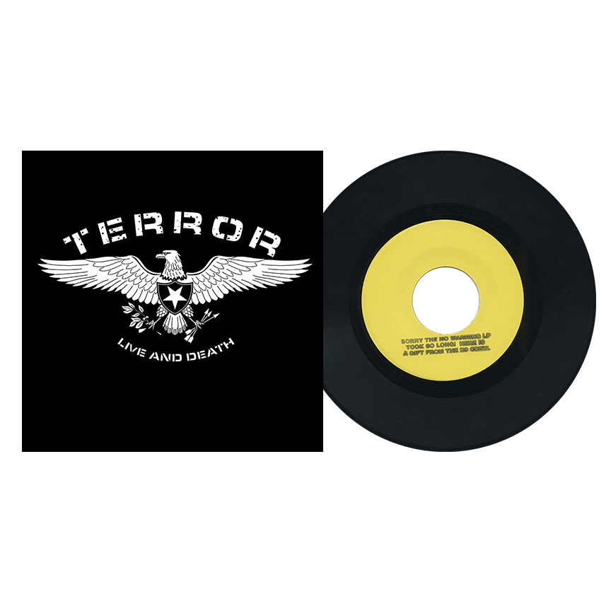 This was B9's first "Bonus" 7" - we pressed a live Terror recording onto vinyl and gave most of them away to everyone who pre-ordered No Warning's Ill Blood LP. There were so many delays with that particular record, that we wanted to give them something extra, so we just included it as a surprise. The 327 copies that were given away with the NW records have a rubber-stamped B-Side explaining it, and 173 copies have a blank B-Side.
