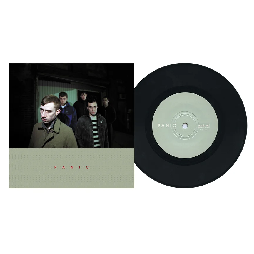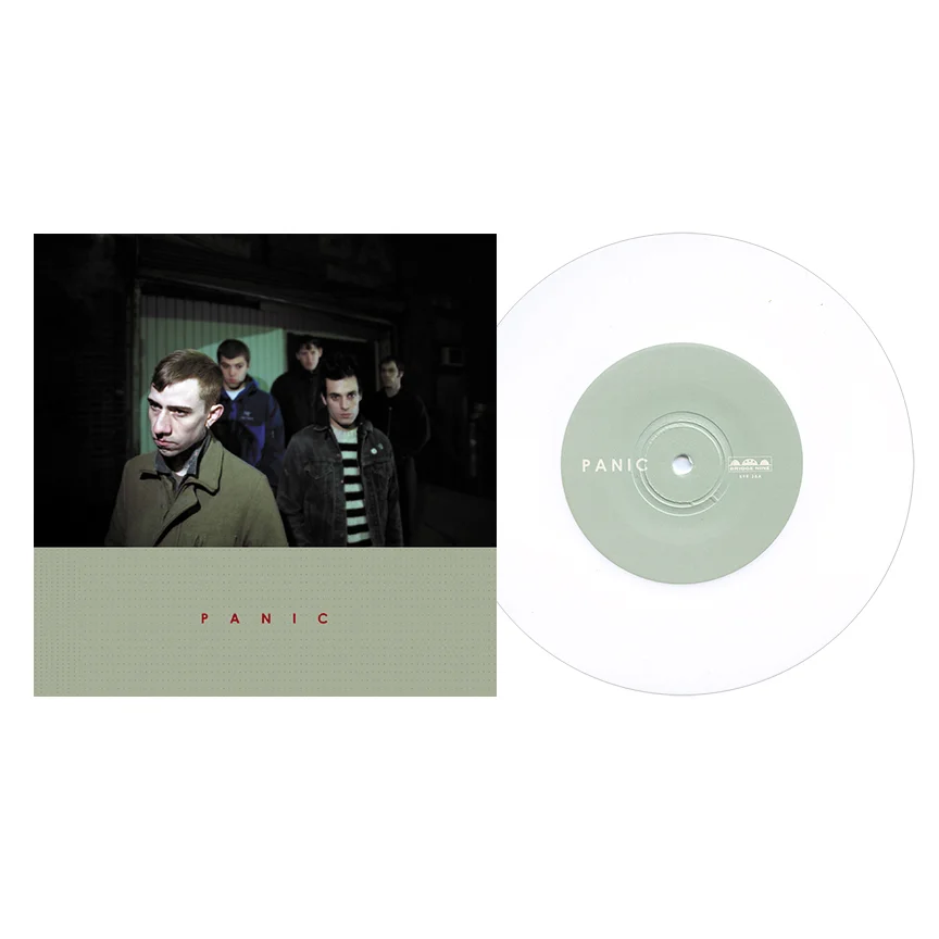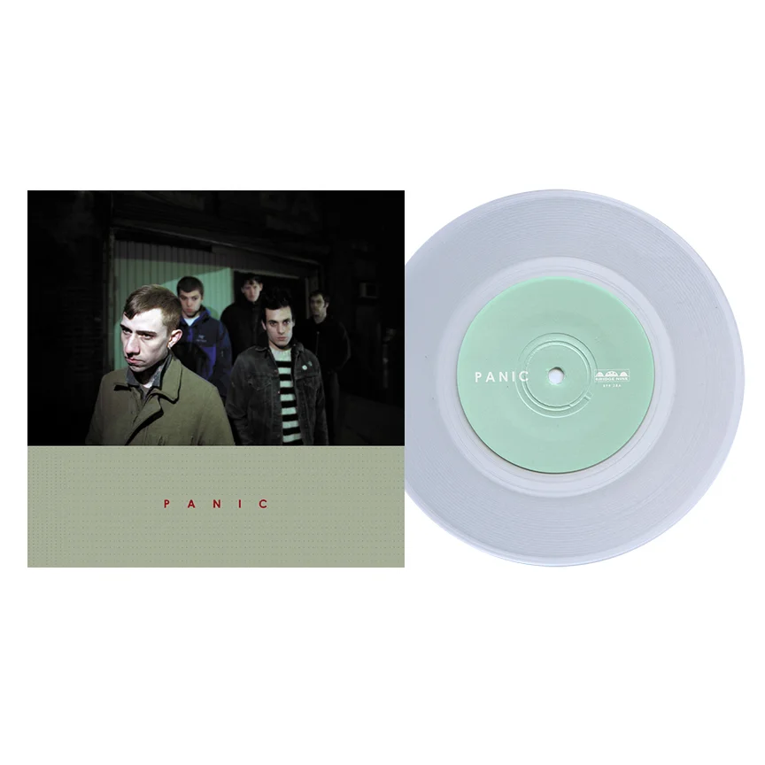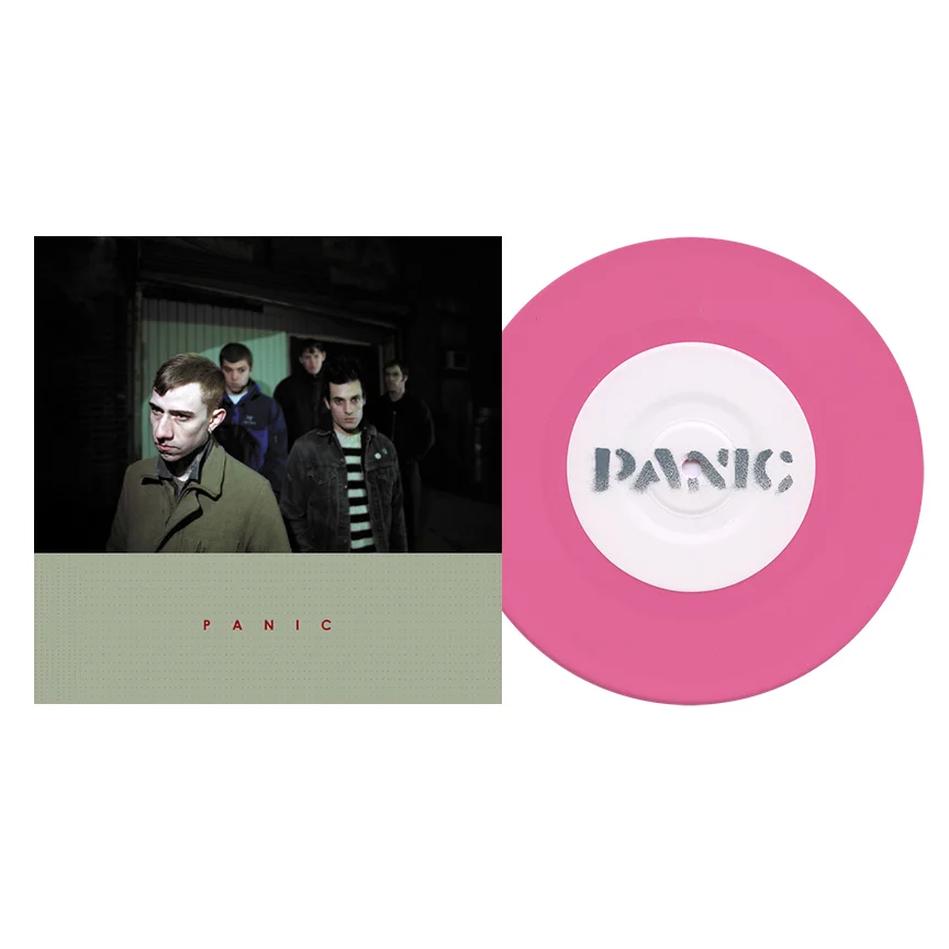 The test pressings for Panic's second 7-inch EP have brown vellum covers. The band made a release version of this record available in an edition of only 35 copies, and each record utilized a recycled cover from an old 45. The final pressing of 200 on pink with spray-painted center labels was made when we realized we still had some excess covers in the warehouse. The 7" version of this EP is out of print, but the songs are part of side A of Panic's 12" compilation Strength In Solitude, which also includes the band’s 2nd and 3rd EPs and is available here.