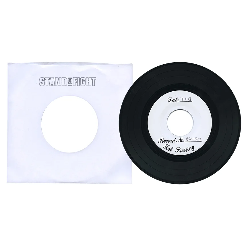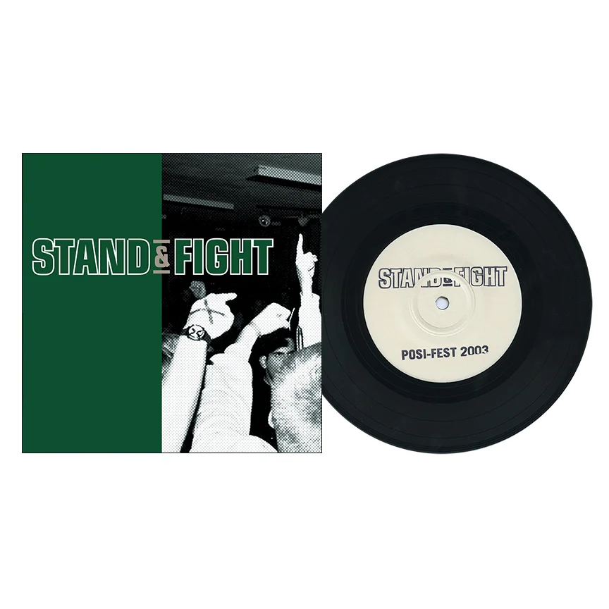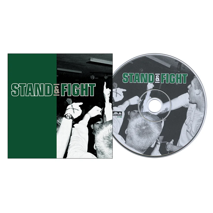This self-titled EP featured six new songs from Stand & Fight on the 7-inch vinyl and compiled the band’s Impact Demo recording session onto the CD, making it a 12-song full-length. There are two CD versions, the earlier jewel case press and the released shortly later redesigned digipack. A single vinyl pressing of 1,250 copies includes a black vinyl edition with blank center labels that were hand stamped and sold at the 2003 Posi Numbers Fest in Wilkes-Barre, PA.