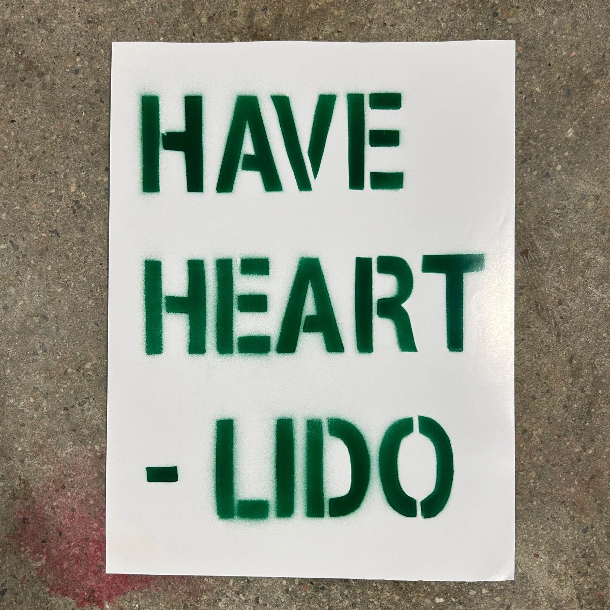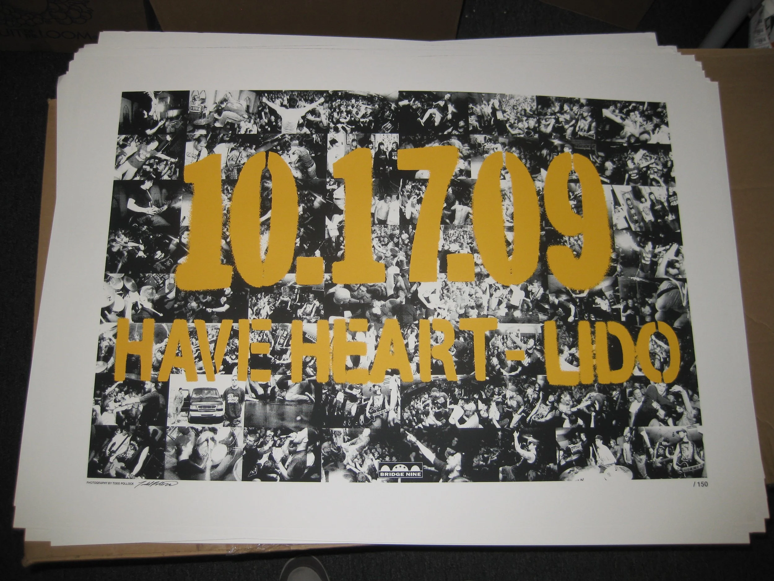 The 10.17.09 was taken straight from the stencil that Bridge Nine had used for Ten Yard Fight in 1999 (with a little number swap to make in ‘09). Chris Wrenn cut out the stencil for the Have Heart info and spray-painted it onto paper.