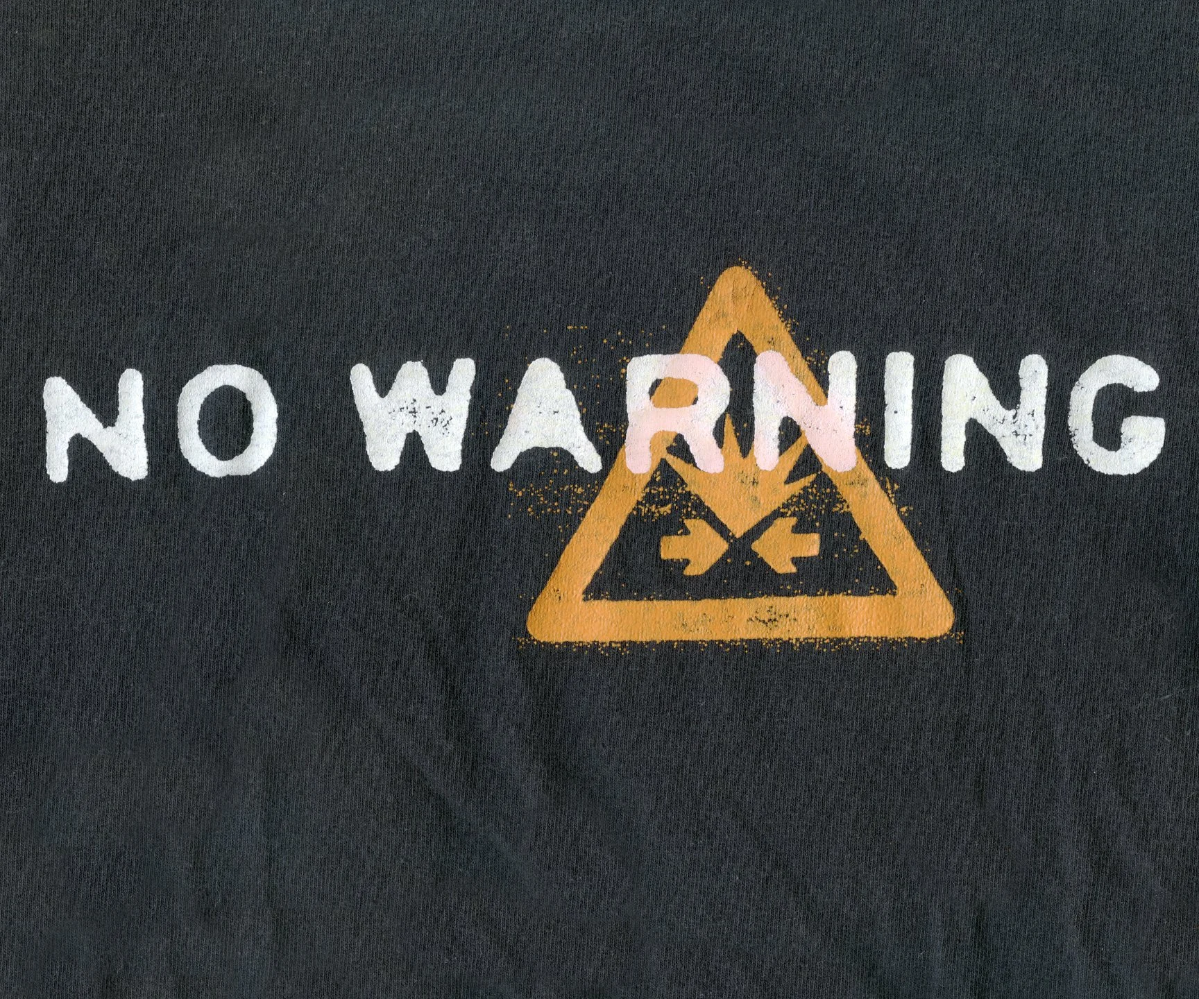 This was the first T-shirt Bridge Nine released for NO WARNING, featuring elements from the cover artwork for their self-titled EP, released on October 23rd, 2001. Designed by Christopher Cannon, and printed on a black, 100% cotton Anvil brand T-shirt. A small Bridge Nine logo is printed on the back below the neckline.